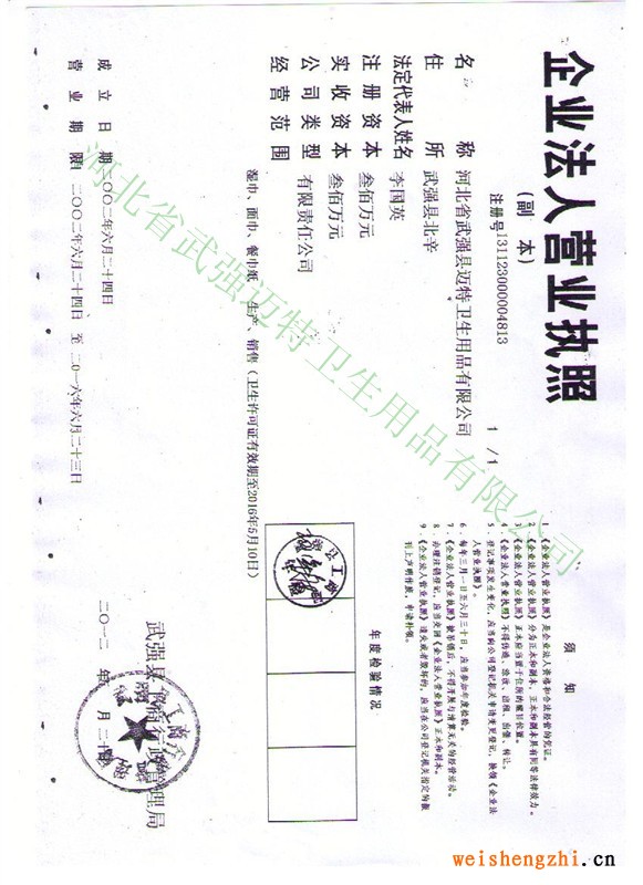 | 發(fā)證機(jī)構(gòu): | 武強(qiáng)縣工商行政管理局 | 發(fā)證時(shí)間 : | 2003-02-24 |