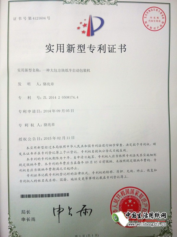 榮譽資質(zhì) 一種大包方塊紙半自動包裝機