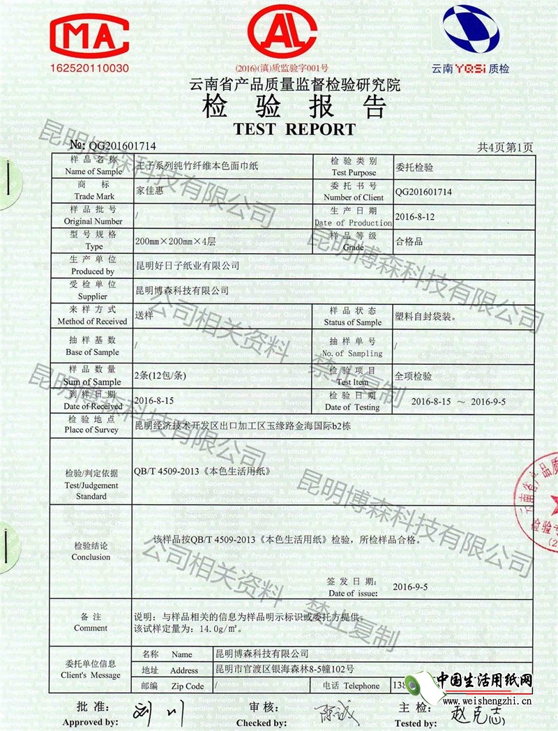 證書介紹 王子純竹纖維本色生活手帕紙質(zhì)檢報告,按照標(biāo)準(zhǔn)項目,所有指標(biāo)全檢,并全部合格!