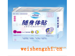 使用高效、超強吸水劑,全面解決生理需要符合國家衛(wèi)生標準的衛(wèi)生巾,防止感染。