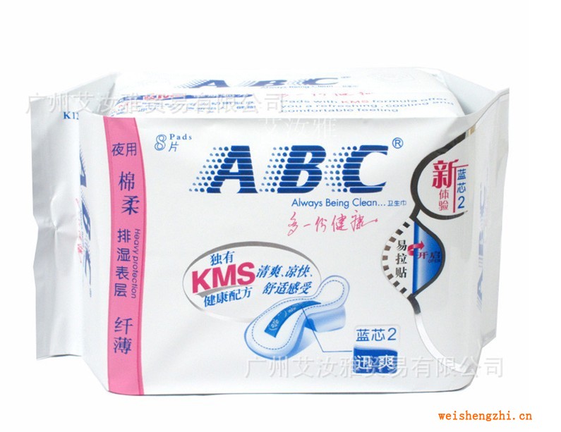 - 產(chǎn)品名稱:ABC 夜用纖薄棉柔排濕表層衛(wèi)生巾(含KMS健康配方)