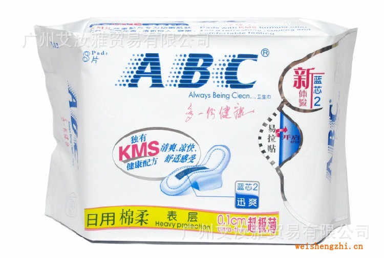 - 產(chǎn)品名稱:ABC 日用超極薄棉柔排濕表層衛(wèi)生巾 包裝數(shù)量(片): 8 片/包