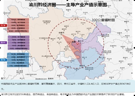 中國(guó)西部紙業(yè)產(chǎn)業(yè)園300公里輻射范圍,基可覆蓋川東食品醫(yī)藥電子信息產(chǎn)業(yè)帶(食品飲料產(chǎn)值382,電子信息284億,生物醫(yī)藥100億),環(huán)渝食品醫(yī)藥產(chǎn)業(yè)集群(食品產(chǎn)值102,電子信息112億,生物醫(yī)藥105億,煙草40億),黔東北煙酒產(chǎn)業(yè)發(fā)展區(qū)((白酒產(chǎn)值660億,煙產(chǎn)值132億)。總輻射人口1.4億人口,區(qū)域GDP總產(chǎn)值達(dá)到36738億元。