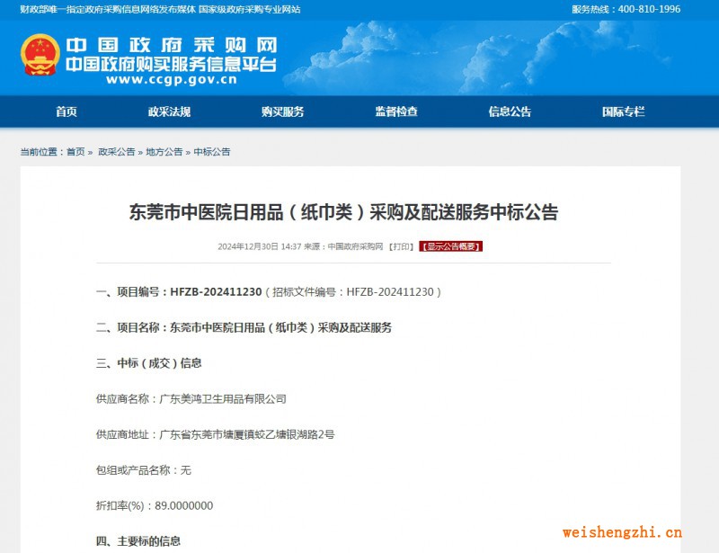 東莞市中醫(yī)院日用品(紙巾類)采購及配送服務(wù)中標(biāo)公告