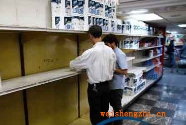 據(jù)美國(guó)媒體5月16日?qǐng)?bào)道,盡管委內(nèi)瑞拉政府承諾將進(jìn)口5000萬卷衛(wèi)生紙,但由于擔(dān)心衛(wèi)生紙緊缺,其國(guó)人仍然爭(zhēng)相搶購(gòu)衛(wèi)生紙,掃空了商場(chǎng)貨架。