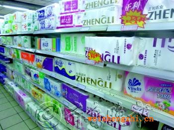 菏澤城區(qū)一百貨商店內(nèi),多款衛(wèi)生紙產(chǎn)品正在促銷。 本報(bào)記者 陳晨 攝