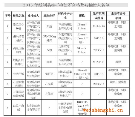 外觀質(zhì)量、洞眼、塵埃度,成紙制品的三大短板。昨日,長春市工商行政管理局對(duì)外公布“流通領(lǐng)域紙制品商品質(zhì)量監(jiān)測(cè)提示”結(jié)果,10個(gè)品牌的紙制品因?yàn)檫@三項(xiàng)不合格列入質(zhì)量黑名單。