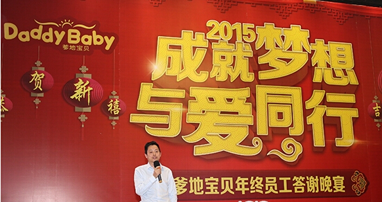圖為爹地寶貝董事長林斌在2015品牌答謝晚宴上發(fā)言
