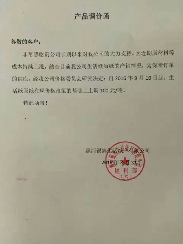 關(guān)鍵詞: 紙業(yè)漲價(jià)