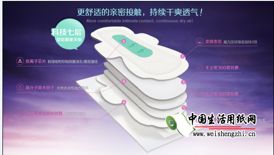 負(fù)離子衛(wèi)生巾:獨(dú)有7層制造工藝