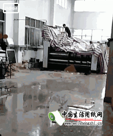 紙板車間屋頂成片被揭開,大量原紙被水浸泡
