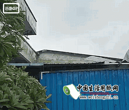 一紙箱廠屋頂被揭掉一塊,風(fēng)雨瞬間彌漫車間