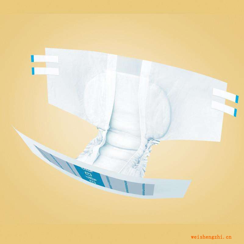成人紙尿褲產(chǎn)品為片狀,穿好后為短褲型。它是利用膠粘片連接成一條短褲。膠粘片同時有調(diào)整褲腰尺寸的作用,以便適合不同使用者的胖瘦體形。