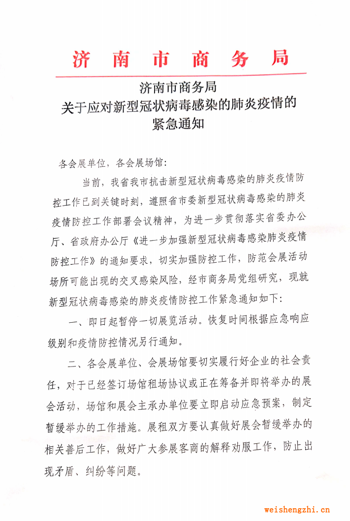 關(guān)于“2020山東生活用紙展延期舉辦”的通告、“2020中國(guó)日化洗滌用品(濟(jì)南)展覽會(huì)延期舉辦”的通告
