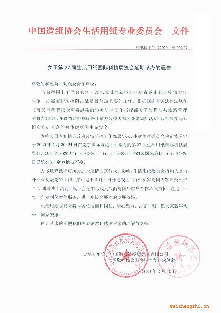 關(guān)于“2020山東生活用紙展延期舉辦”的通告、“2020中國日化洗滌用品(濟(jì)南)展覽會延期舉辦”的通告