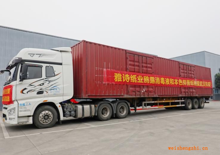 核心提示: 2月20日下午3時(shí)許,3輛滿載8000瓶鷗露消毒液和6780箱鷗露本色抑菌竹紙的大貨車駛出四川石化雅詩(shī)紙業(yè)有限公司倉(cāng)庫(kù),這是中石化四川銷售有限公司及下屬雅詩(shī)紙業(yè)捐贈(zèng)給武漢疫區(qū)的第二批物資,總價(jià)值260萬(wàn)元。這批物資