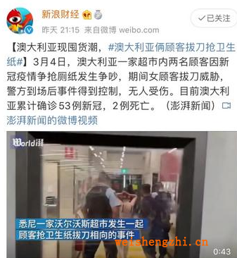 有報(bào)道稱,澳大利亞兩位居民為了搶衛(wèi)生紙,甚至拔刀相向。
