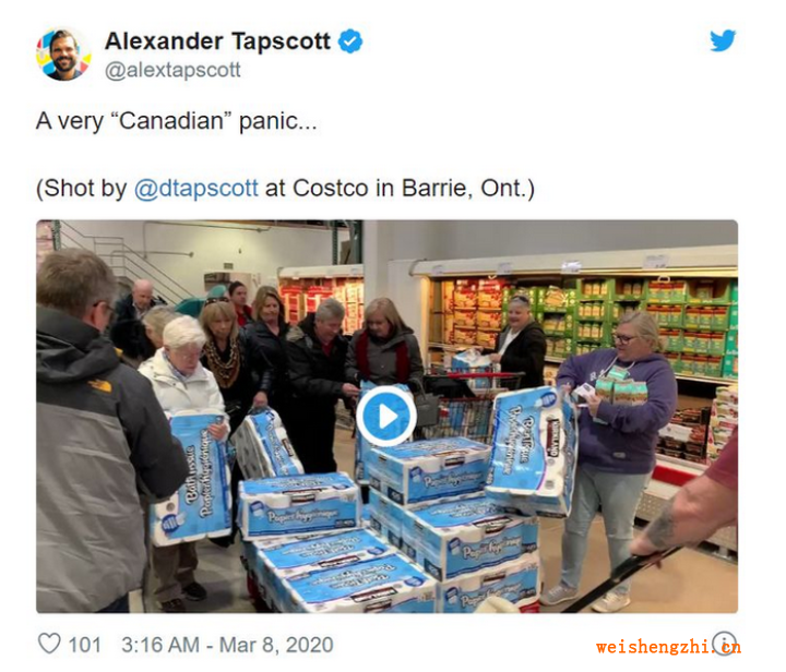 加拿大居民在搶購(gòu)衛(wèi)生紙↓↓