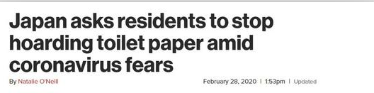 此前,面對(duì)民眾瘋搶衛(wèi)生紙,日本政府特地提醒居民不要囤積衛(wèi)生紙,并對(duì)“衛(wèi)生紙短缺”進(jìn)行了辟謠。