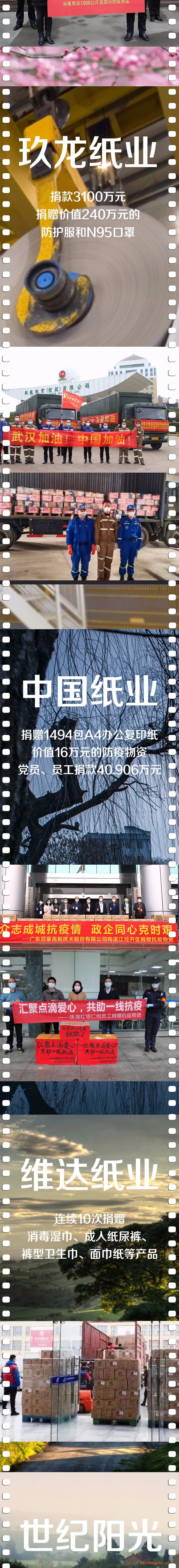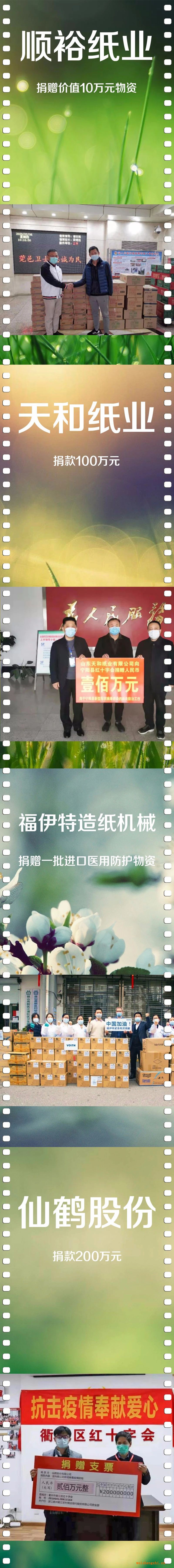 疫情發(fā)生后,紙業(yè)商會42家紙業(yè)商會會員企業(yè)積極捐款捐物,助力抗擊新冠肺炎疫情,累計捐款2億元,捐贈物資價值5000多萬元,企業(yè)黨員、職工捐款455萬元。充分展現(xiàn)了造紙企業(yè)守望相助的大愛情懷和強烈的社會責(zé)任感!