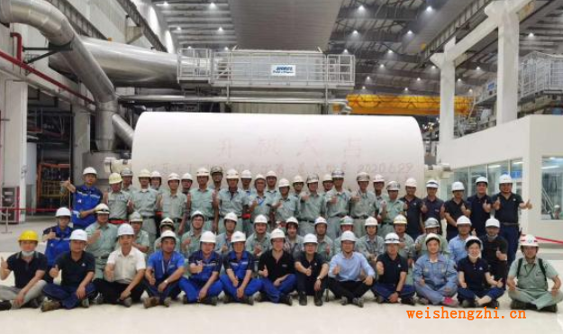 江蘇王子制紙有限公司生活用紙?jiān)堩?xiàng)目經(jīng)過兩年多的準(zhǔn)備,一期項(xiàng)目第一臺(tái)紙機(jī)于6月29日15時(shí)18分產(chǎn)出第一卷紙。據(jù)小編了解,該機(jī)臺(tái)由安德里茨提供,卷紙機(jī)上紙幅寬5600mm,大工作車速2000m/min,此次開機(jī)由日本技術(shù)團(tuán)隊(duì)提供技術(shù)支持。
