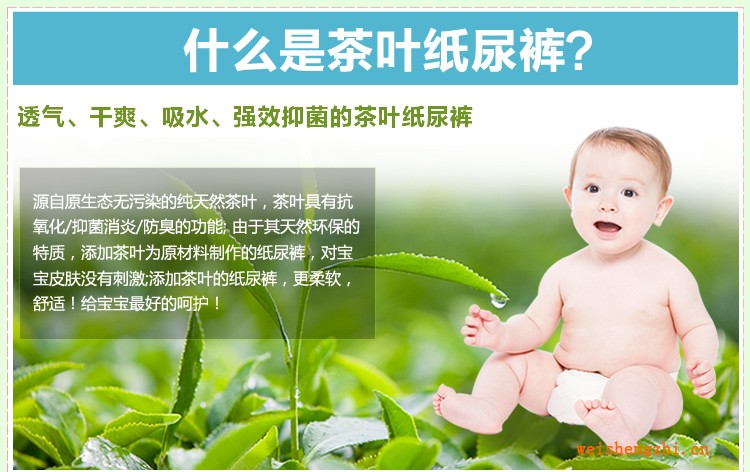 健康型茶葉紙尿褲的大特點(diǎn):消炎殺菌,專治紅屁屁及過(guò)敏,告別尿臭味