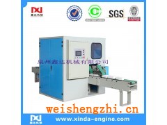 CIL-FT -281型大回旋面巾切紙機(jī)機(jī)是一臺(tái)用于自動(dòng)連續(xù)切斷折疊類(lèi)的紙巾產(chǎn)品,如盒裝面巾紙或折疊擦手紙。整機(jī)的設(shè)計(jì)及制造采用了新的電子技術(shù)及伺服傳動(dòng)技術(shù),大大增強(qiáng)了切紙的穩(wěn)定性,并提高了紙巾的切斷質(zhì)量。本切紙機(jī)的切斷速度極高,單進(jìn)紙通道機(jī)型每分鐘可切75個(gè)面巾,雙進(jìn)紙通道機(jī)型每分鐘可切150 個(gè)面巾,所以一臺(tái)CIL-FT -281型大回旋面巾切紙機(jī)可與幾臺(tái)折紙機(jī)配套使用,而且切不同尺寸的面巾時(shí)調(diào)整簡(jiǎn)單、方便。夾紙切斷部分可就不同尺寸的面巾隨時(shí)進(jìn)行調(diào)整,無(wú)需另外更換部件,切面整潔、平整,不會(huì)壓擠或損壞面巾。