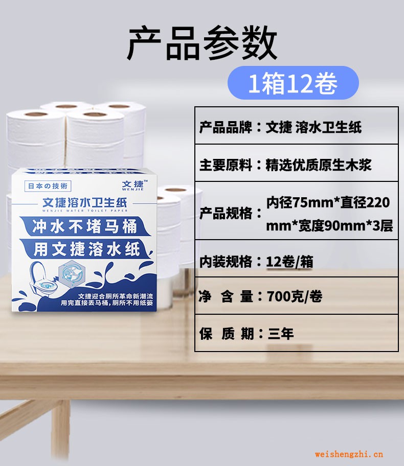 蘇州文捷溶水衛(wèi)生紙水溶紙可溶水大卷紙大盤紙公用紙紙廁紙巾2箱