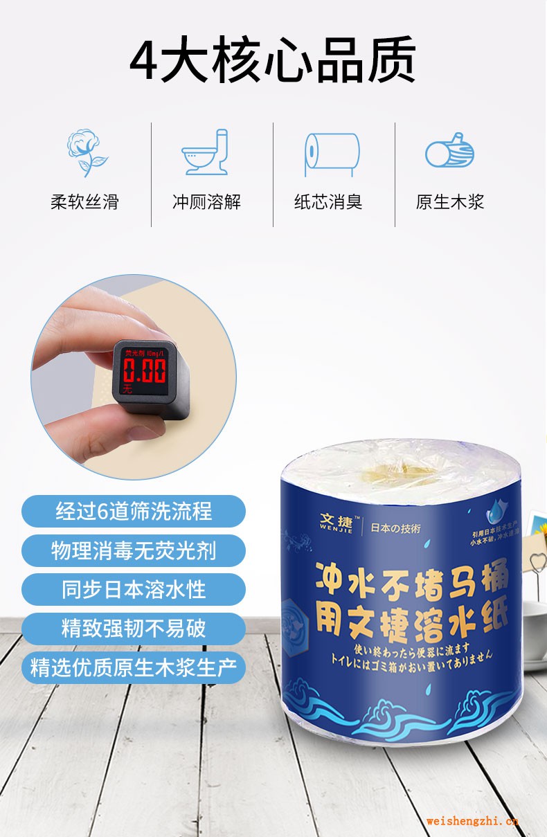 蘇州環(huán)保易容文捷紙衛(wèi)生紙溶水紙可沖水卷筒紙廁紙有芯紙1提