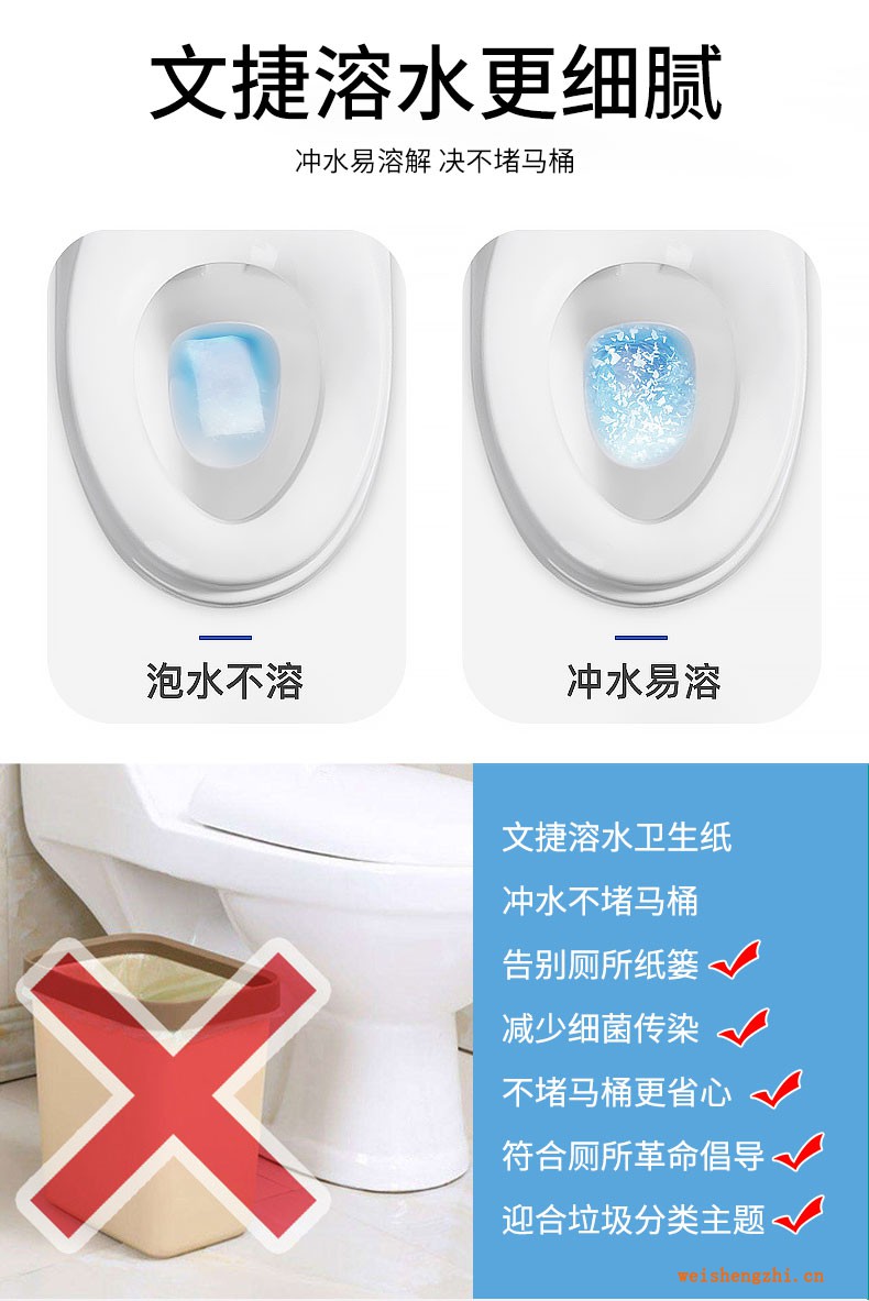 (文捷溶水衛(wèi)生紙免垃圾分類(lèi),沖水不堵馬桶,用文捷溶水紙)文捷溶水衛(wèi)生紙作為可沖水衛(wèi)生紙產(chǎn)品,是不用擔(dān)心堵塞馬桶的,因?yàn)槲慕菘蓻_水衛(wèi)生紙比大溶解更細(xì)膩(文捷溶水衛(wèi)生紙免垃圾分類(lèi),沖水不堵馬桶,用文捷溶水紙)